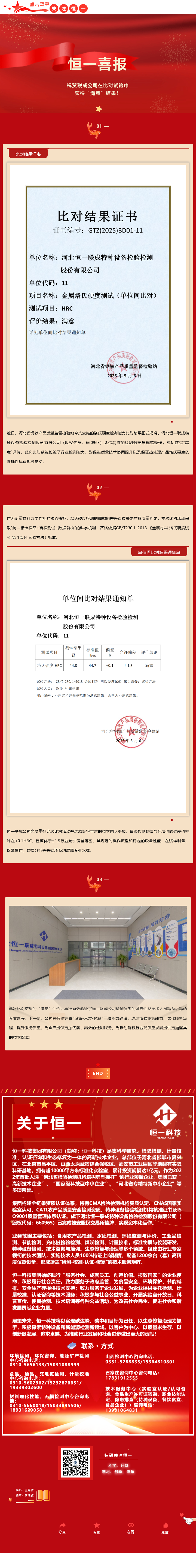 喜報 | 恒一聯成公司在全省機構洛氏硬度比對試驗中獲得“滿意”結果!